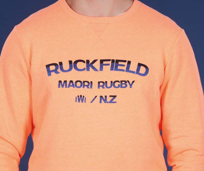 Adoptez un style à la fois sportif et tendance avec ce sweat-shirt signé Ruckfield. Conçu dans une matière douce et agréable, il se distingue par sa couleur orange vive qui apporte une touche d’originalité à vos tenues. L’inscription “Ruckfield Maori Rugby IWI / NZ” en bleu marine sur le devant renforce l’esprit rugby et met en avant l’ADN de la marque.