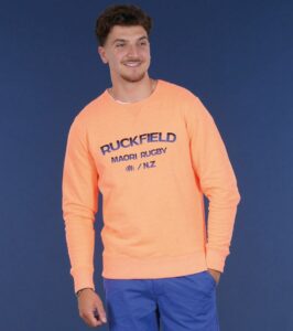 Adoptez un style à la fois sportif et tendance avec ce sweat-shirt signé Ruckfield. Conçu dans une matière douce et agréable, il se distingue par sa couleur orange vive qui apporte une touche d’originalité à vos tenues. L’inscription “Ruckfield Maori Rugby IWI / NZ” en bleu marine sur le devant renforce l’esprit rugby et met en avant l’ADN de la marque.